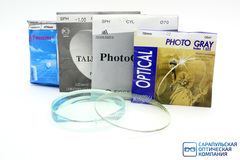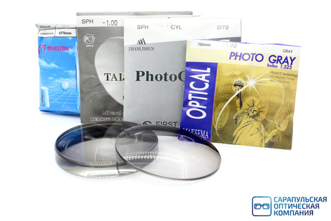 стеклянная линза, неорганическое стекло, однофокальная, стигматическая, фотохромная, цветная, серый, коричневый, коррекция зрения